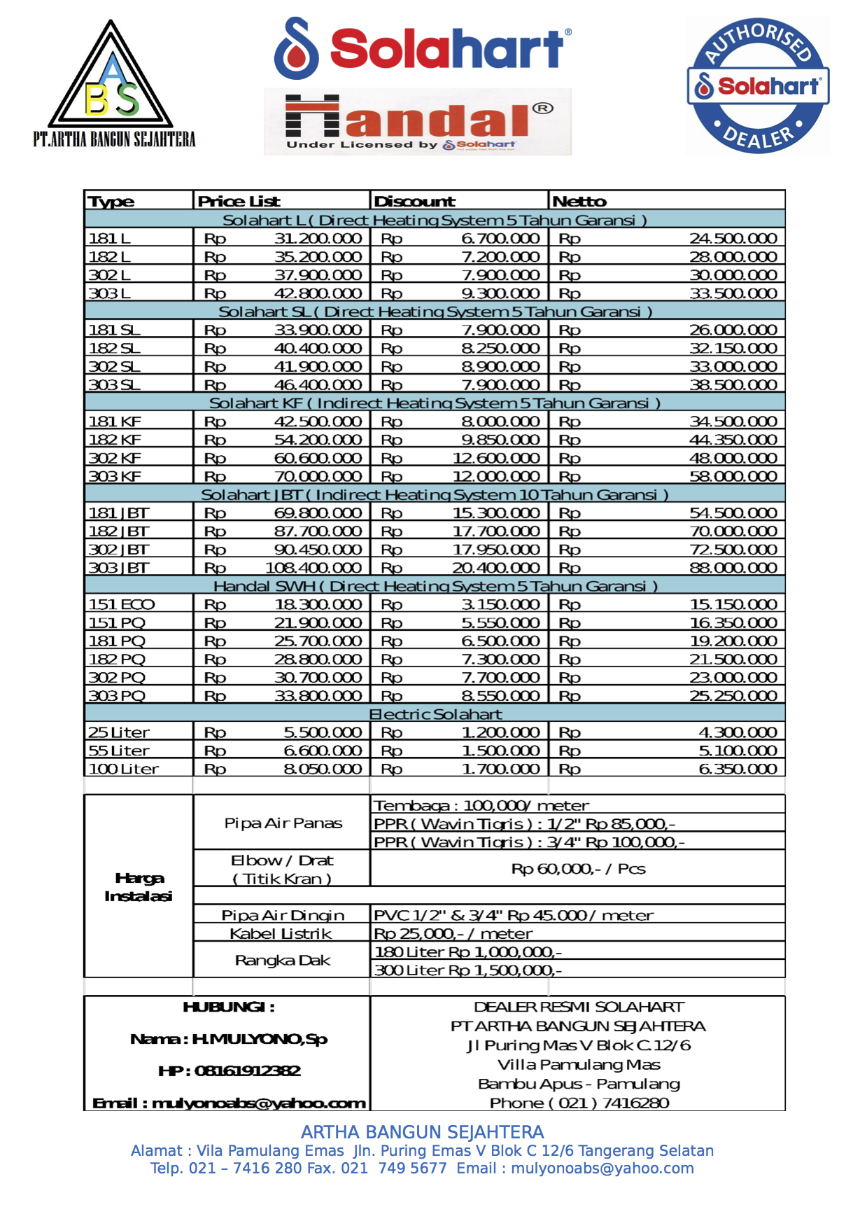 Pemasangan di berbagai wilayah yang dilakukan oleh PT. Artha Bangun Sejahtera